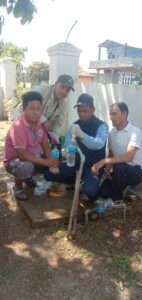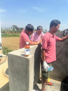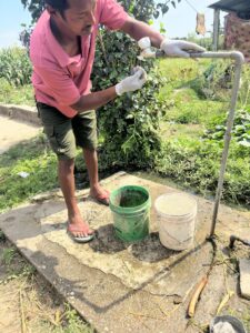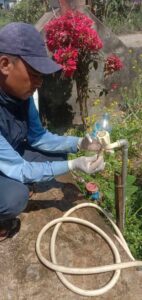 यश पिठुवा खानेपानी संस्था अन्तर्गतका धाराहरूकाे पानी परिक्षण काे लागि नमुना पानी संकलन कार्य गर्दै